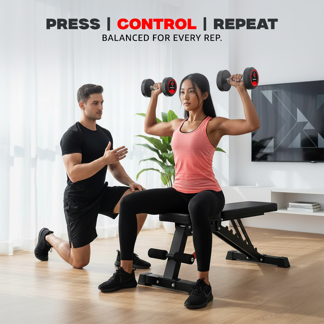 Rounded Rubber Dumbbells are designed for durability, comfort, and safe strength training. Each dumbbell features a solid cast-iron core with a high-quality round rubber coating that reduces noise, prevents floor damage, and ensures long-lasting performance. The ergonomic chrome-plated handles provide a secure, non-slip grip for smooth workouts.